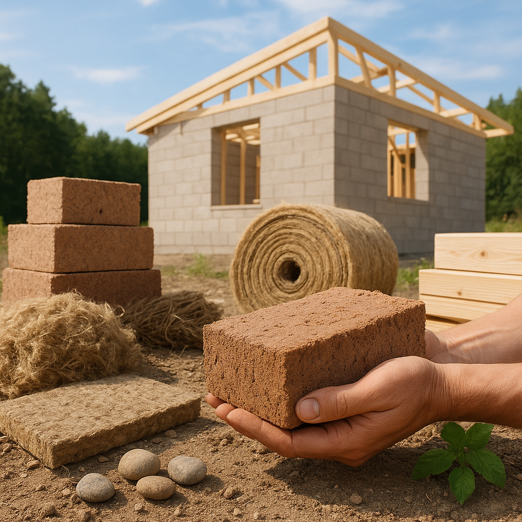 - Materiały roślinne, m.in. styrodur zastępowany matami konopnymi czy słomą sprasowaną w formie paneli.