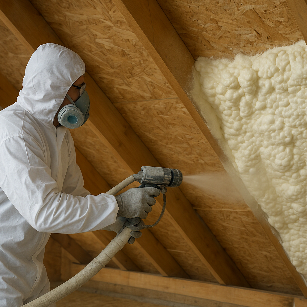 - Izolacja stropów i poddaszy – piana otwartokomórkowa dobrze wycisza pomieszczenia oraz reguluje wilgotność.